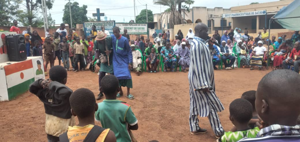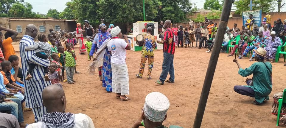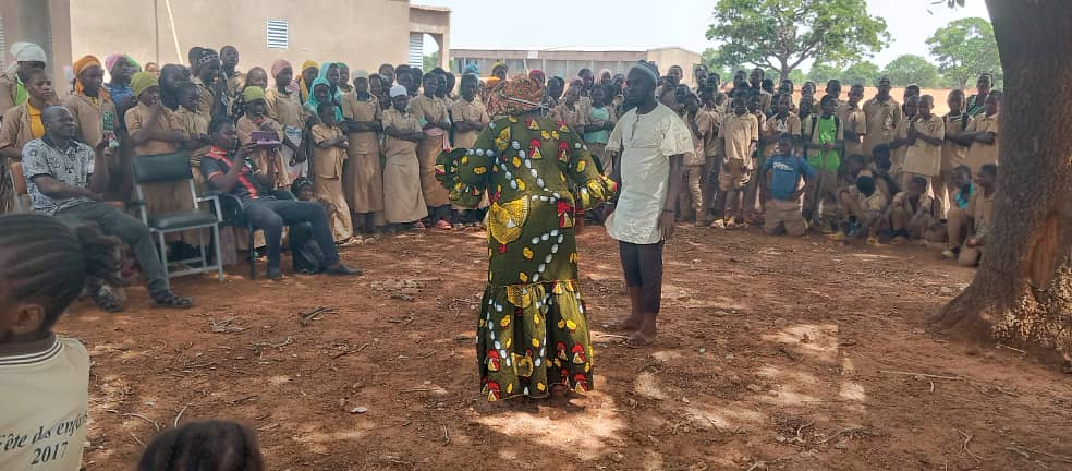 - Trois sketchs joués dans des établissements scolaires (Satiri, Sala et Mogobasso) sur des thèmes sensibles : la paix, la citoyenneté, la cohésion sociale et la lutte contre les violences basées sur le genre. Les échanges avec les élèves ont permis de libérer la parole et de sensibiliser la jeunesse à son rôle dans la construction d’une société apaisée.